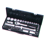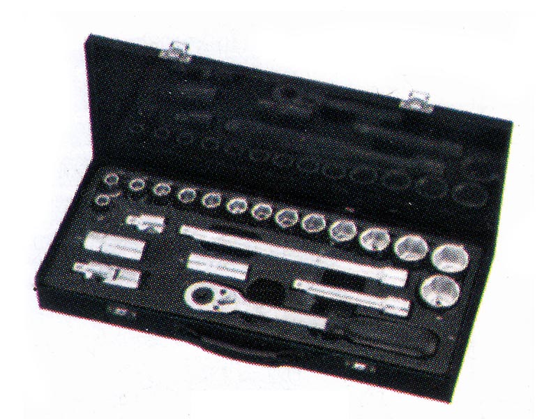 It consists of Sockets, Hex Bit Sockets, Philips Bit Sockets, Extension Bars, Ratchet Handle, Universal Joint, Sliding T Bar, Flex Handle, Spinner Handle, Ufo Disc, Hex Key Wrench, Spring Extension, Spark Plug, Cress Bar, Adaptor, Spin Disc, Deep Wall Sockets, Flex Handle in a metal case or a blow case.